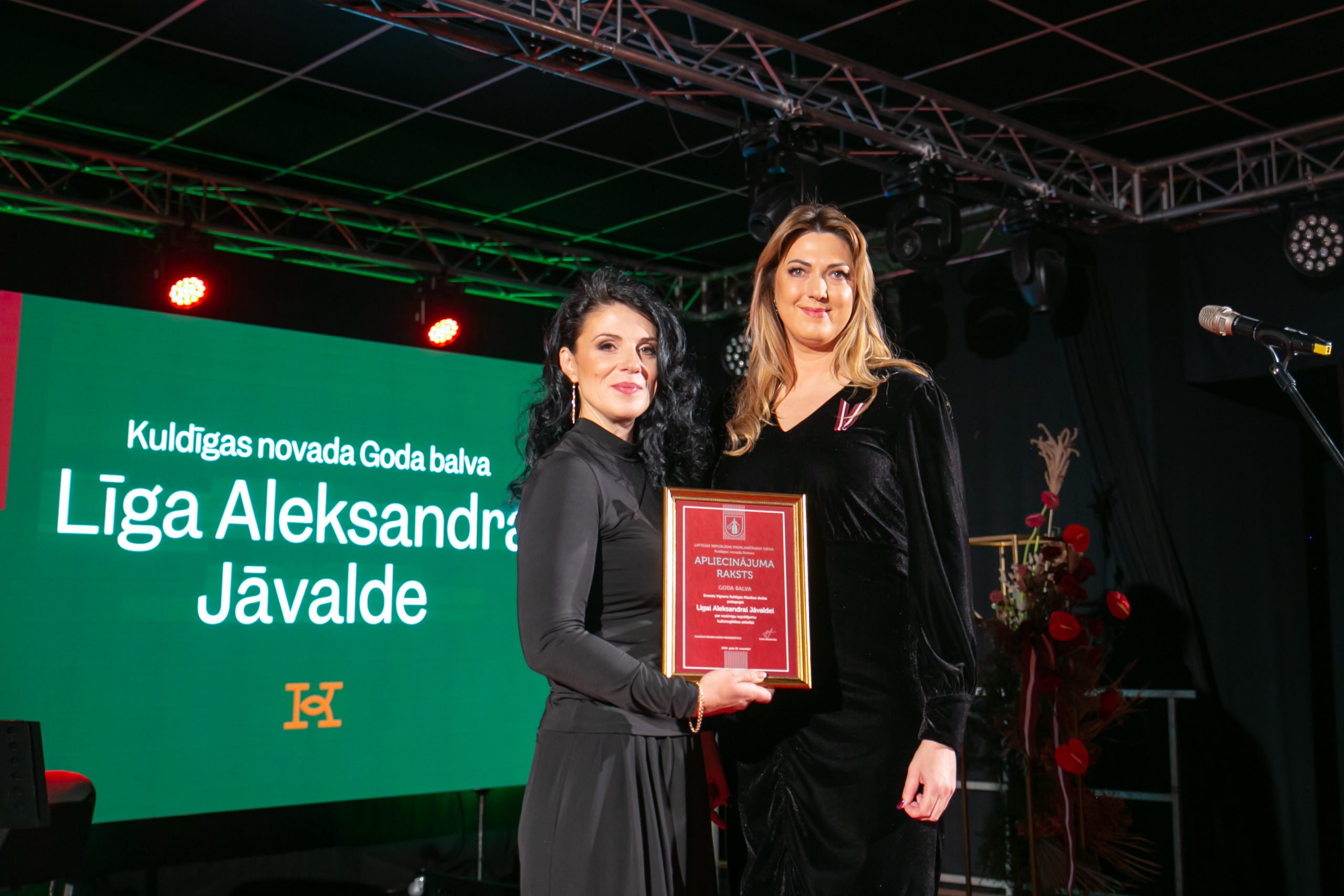 Ernesta Vīgnera Kuldīgas Mūzikas skolas pedagoģe, saksofonistu ansambļa un pūtēju orķestra vadītāja LĪGA ALEKSANDRA JĀVALDE Kuldīgas novada Goda balvu saņem par nozīmīgu ieguldījumu kultūrizglītības attīstībā. Vienlaicīgi ar studijām Jāzepa Vītola Latvijas Mūzikas akadēmijā, viņa sākusi strādāt E. Vīgnera Mūzikas skolā, kurā strādā jau 17. gadu. Kopš brīža kad Līga strādā E. Vīgnera Mūzikas skolā viņas vadītais saksofonistu ansamblis, kā arī saksofona klases audzēkņi katru gadu piedalās starptautiskos, valsts un reģiona konkursos, gūstot izcilus rezultātus un vietas. Ik gadu pārdomāti līdz niansēm ir Līgas rīkotie saksofonistu koncerti – uzvedumi, kā arī, nu jau vairākus gadus tiek organizētas jauno mūziķu nometnes, kuros Līga iegulda savu laiku, neskaitot stundas, bet priekšplānā noliekot savus audzēkņus, kuri piedzīvo, iegūst jaunu pieredzi un izaugsmi uz skatuves. Paralēli darbam mūzikas skolā, Līga muzicē Kuldīgas Dzimtsarakstu nodaļā, aktīvi darbojas Kuldīgas Kultūras centrā, savukārt Kuldīgas Tehnoloģiju un tūrisma tehnikumā vada kori, kas rada milzīgu prieku, redzot mainīgumu un izaugsmi studentos. Tāpat Līgas saksofona skaņas priecē neskaitāmi daudz cilvēkus gan mūsu pilsētā un novadā, gan citās Latvijas pilsētās. Līga ir cilvēks – jauda.