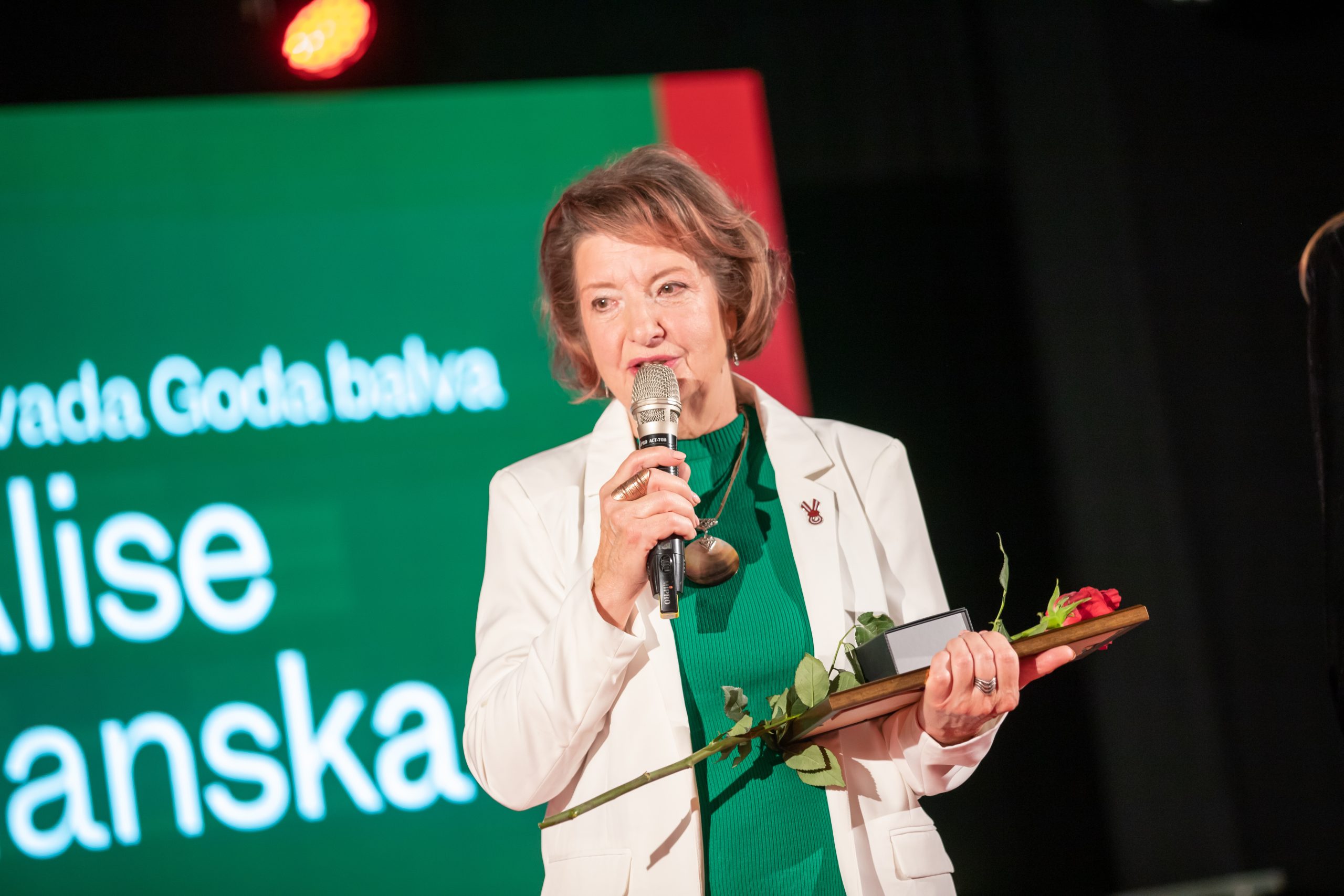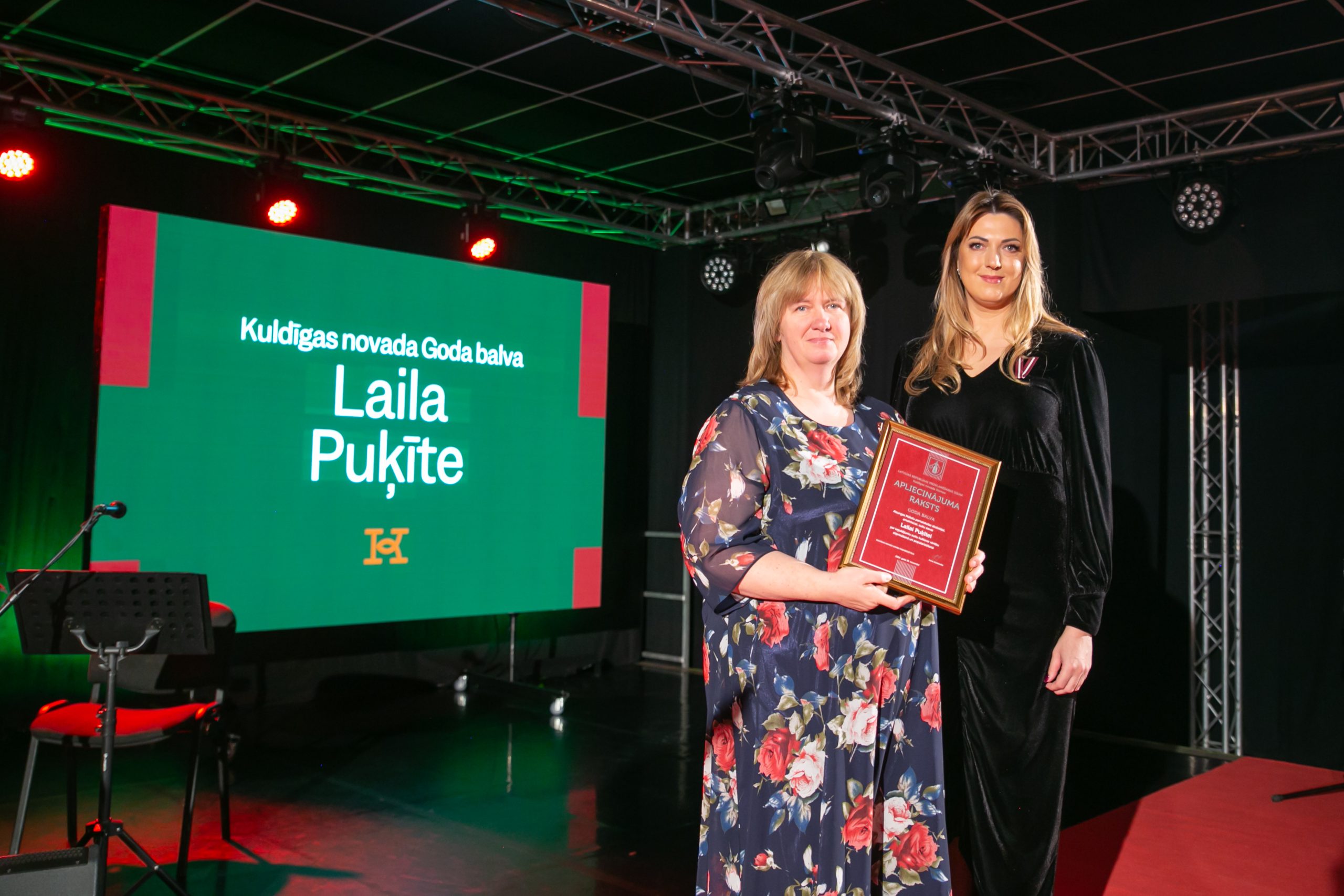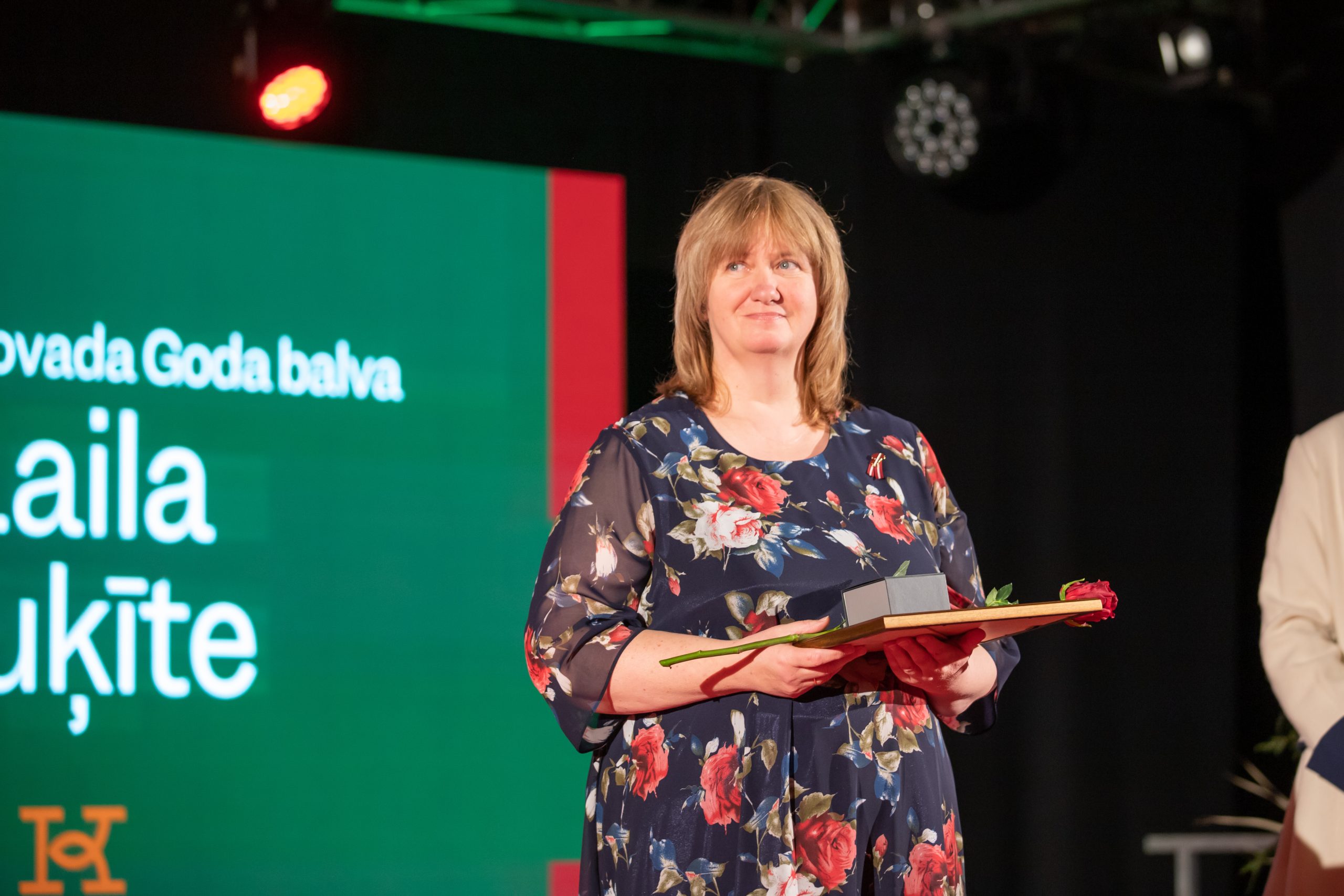 Rumbas pagasta pārvaldes kultūras pasākumu organizatore un amatierteātra vadītāja BAIBA ROZEVSKA Goda balvu saņem par ieguldījumu kultūras dzīves attīstībā. Baiba Rozevska jau desmito gadu vada Rumbas pagasta amatierteātri, kurā darbojas gan pirmsskolas vecuma bērni, gan jaunieši un seniori. Katru gadu Baibas vadībā tiek iestudēts jauns teātra uzvedums, kuriem Baiba pati raksta tekstus, kā arī sarūpē dekorācijas un kostīmus. Viņa prot katram aktierim piemeklēt tieši viņam piemēroto lomu un ar savu sirsnību un labo vadīšanas stilu iedrošina un pamāca jaunos aktierus. Iegūtās zināšanas un tēlotājmākslas spējas amatierteātra dalībniekiem lieliski noder arī ikdienā. Papildus Baiba Rozevska ar savām radošajām idejām priecē Rumbas pagasta iedzīvotājus, kas dzīvo Mežvaldes, Ventas un Novadnieku ciemos. Katru gadu minētās teritorijas tiek izrotātas pašas Baibas darinātās svētku rotās – pārdomāti un gaumīgi. Baibas radošās idejas ir nepārspējamas.