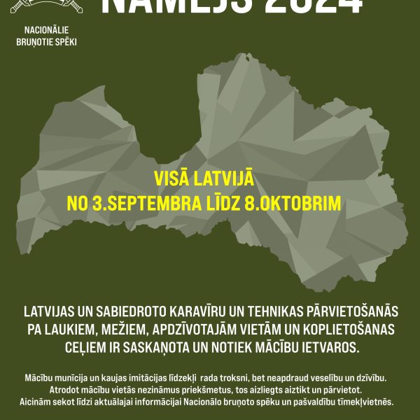 Latvijā norisinās visaptverošas valsts aizsardzības mācības “Namejs 2024” Lauma Migoviča26.08.2024 Jaunumi