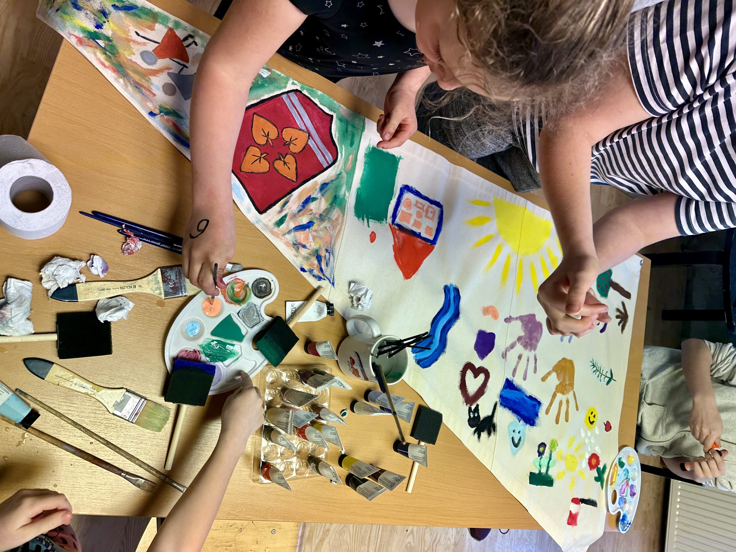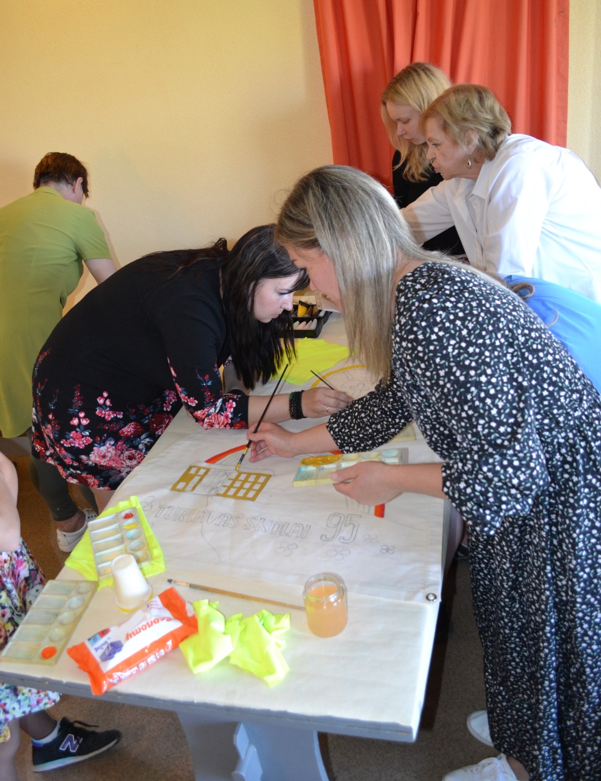 Kuldīgā, skvērā pie Adatu fabrikas – ikviens interesents tika aicināts piedalīties radošā darbnīcā kopā ar māksliniekiem Ievu Vītolu-Lindkvistu un Oli Lindkvistu. Kopīgiem spēkiem un idejām tika apgleznotu bura un turpat arī pacelta.