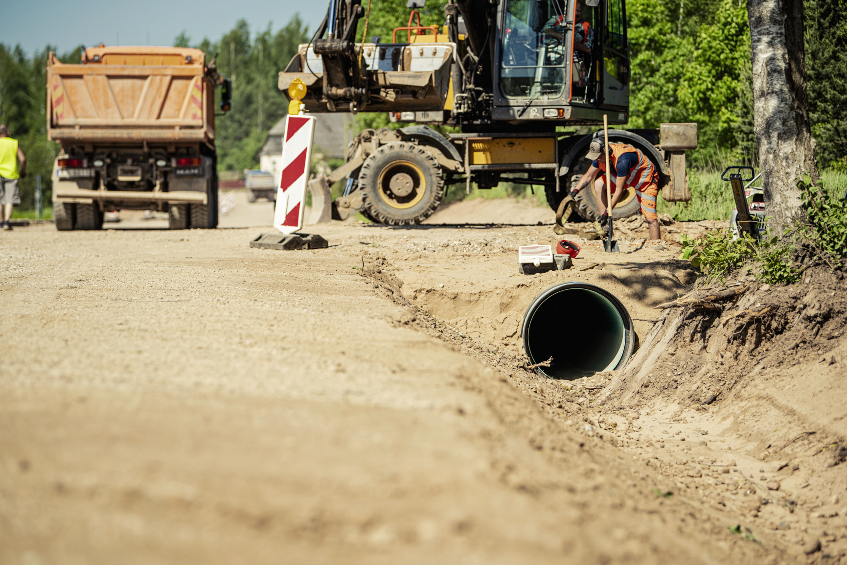 Fotoreportāža: pie Zemītes notiek ceļu būvdarbi; ar satiksmes ierobežojumiem jārēķinās līdz gada beigām