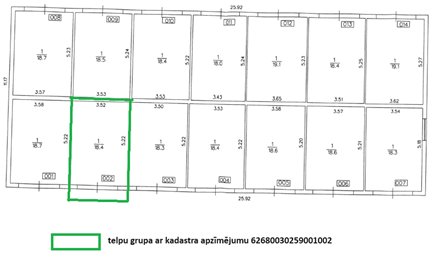 Nomas tiesību izsolē tiek piedāvāts nomas objekts: Garāža Nr.002 ar kadastra apzīmējumu 62680030259001002, platība 18,4 m2. Nomas objekta galvenais lietošanas veids – 1242 garāžas telpu grupas, ietilpst viena telpa.