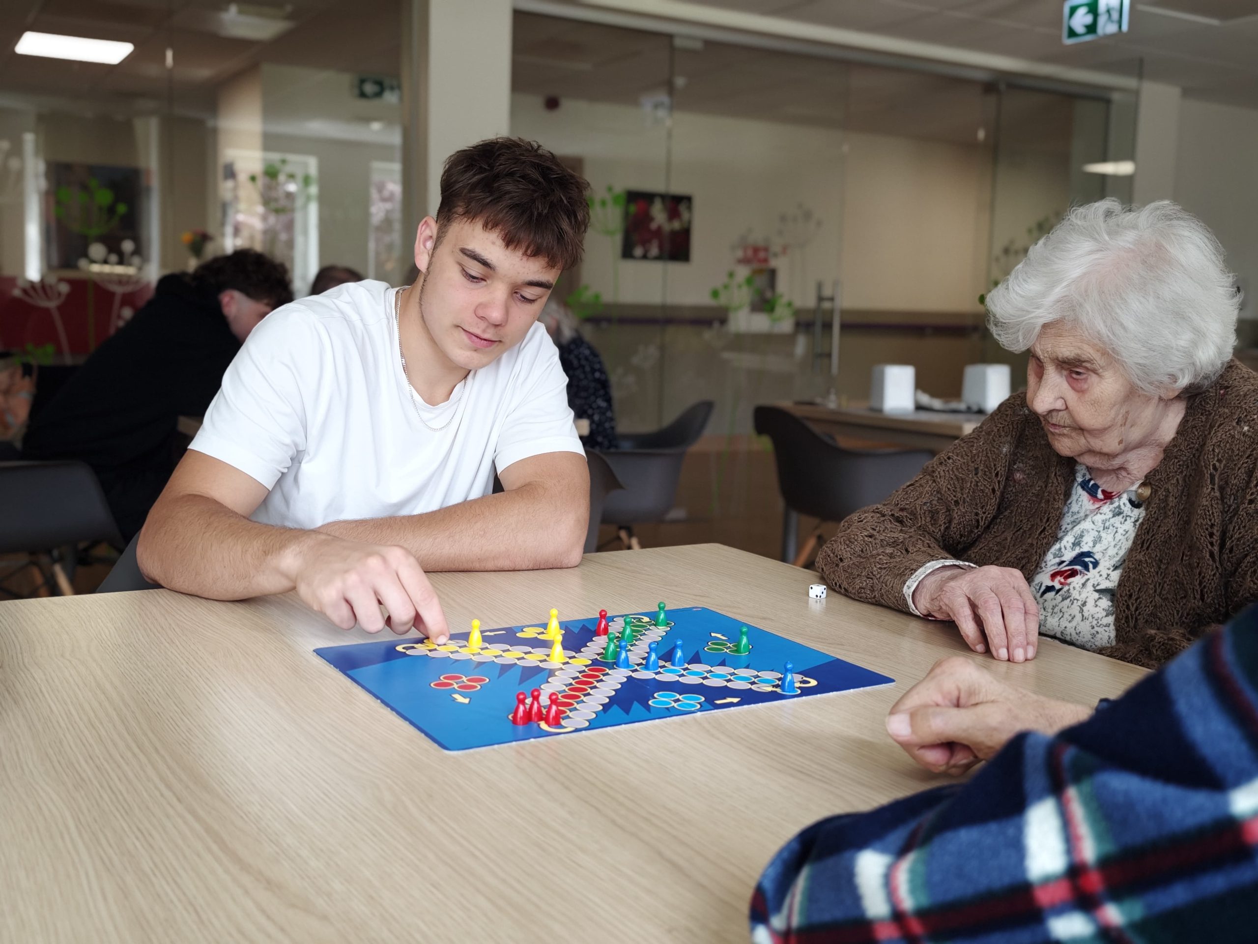 Jaunieši īsteno socializēšanās aktivitātes pansionāta iemītniekiem