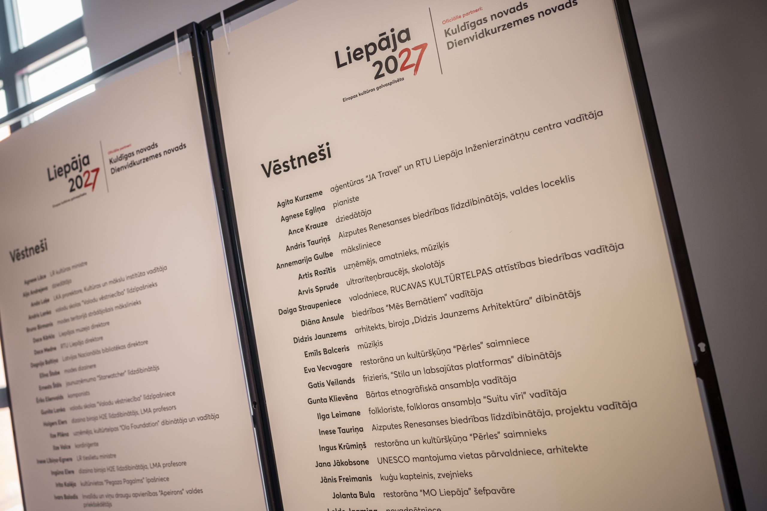 Pasākumā 10. maijā pirmo reizi tikās un savstarpēji iepazinās jaunie Eiropas kultūras galvaspilsētas Liepāja 2027 vēstneši – kopumā 32 aktīvi un iedvesmojoši kuldīdznieki, liepājnieki un dienvidkurzemnieki, kuri šim titulam izraudzīti konkursa kārtībā. Jaunie vēstneši Eiropas kultūras galvaspilsētu 2027 stiprinās savas pilsētas, novada vai reģiona līmenī, rūpējoties par vietējo iedzīvotāju informētību un iesaisti Liepāja 2027 norisēs.