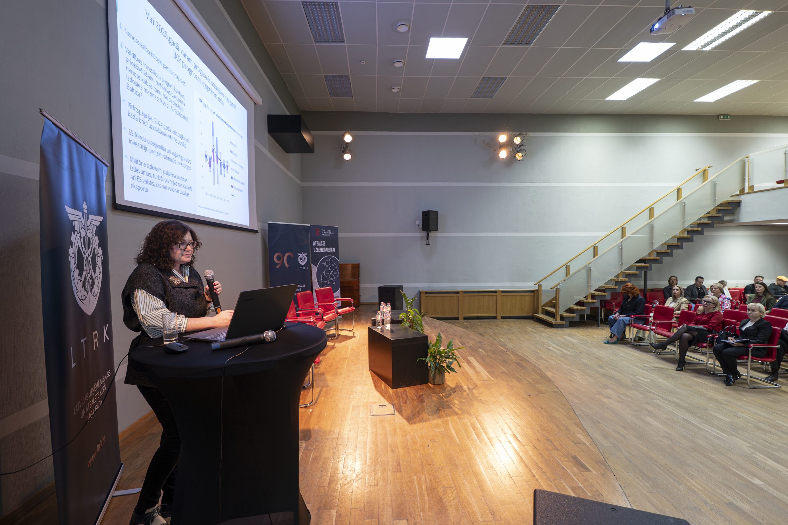 Trešdien, 16. aprīlī Kuldīgā norisinājās LTRK Kurzemes Biznesa kluba pasākums Uzņēmējdarbība šodienas pasaulē, kurā pulcējās vairāk kā 60 interesenti, t.sk., uzņēmēji, valsts un pašvaldību pārstāvji un nozaru eksperti, lai apspriestu aktuālās ekonomikas tendences, akciju tirgus dinamiku, kiberdrošības jautājumus.