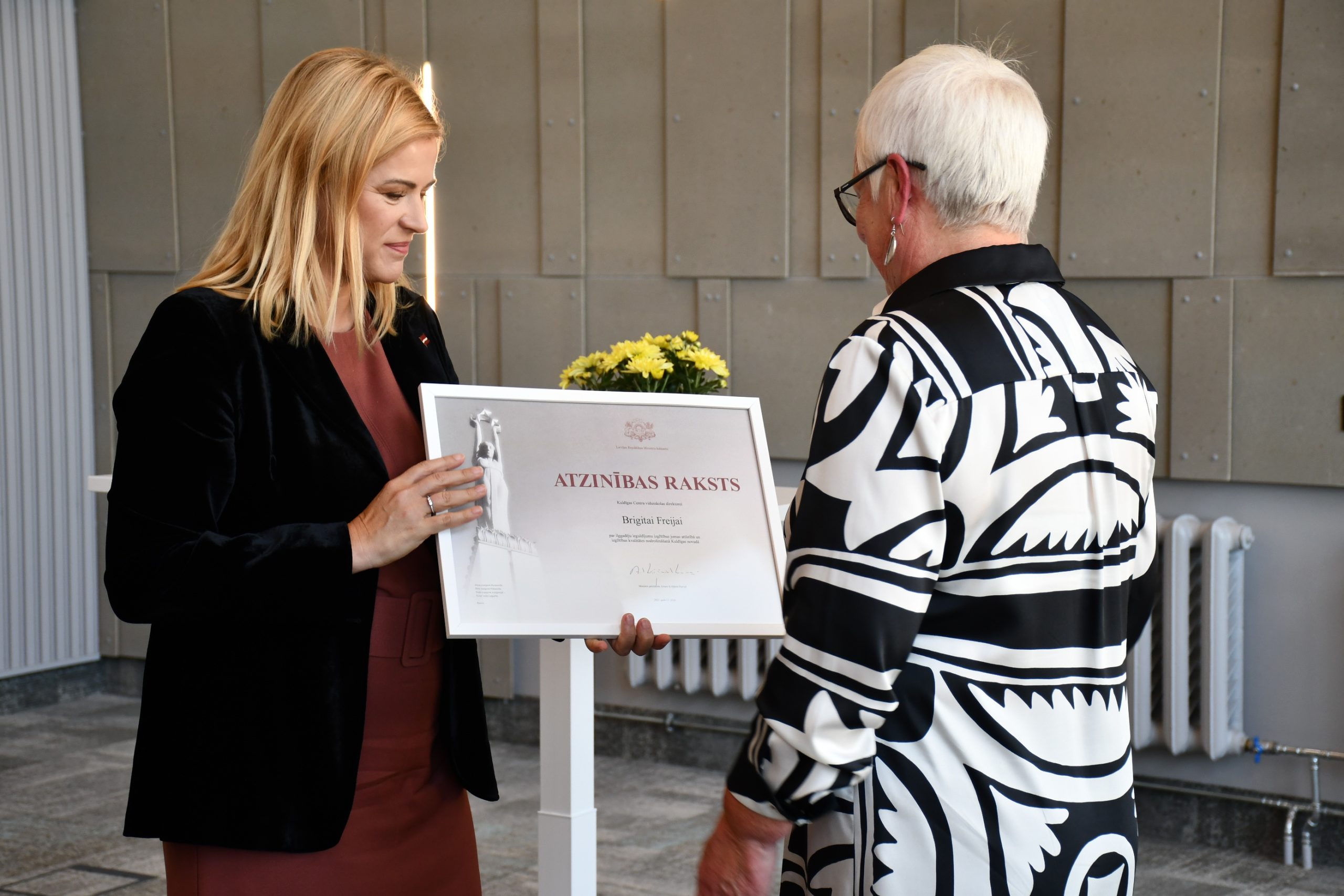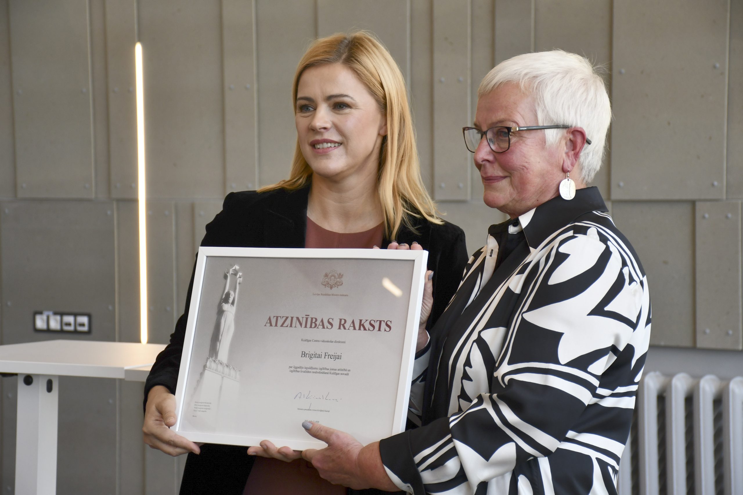 Vizītes turpinājumā Evika Siliņa viesojās Kuldīgas Centra vidusskolā, kur tikās ar skolas vadību, novada Izglītības pārvaldības vadību un skolēniem. Tāpat Ministru prezidente pasniedza Ministru Kabineta Atzinības rakstu ilggadējai Kuldīgas Centra vidusskolas direktorei Brigitai Freijai.