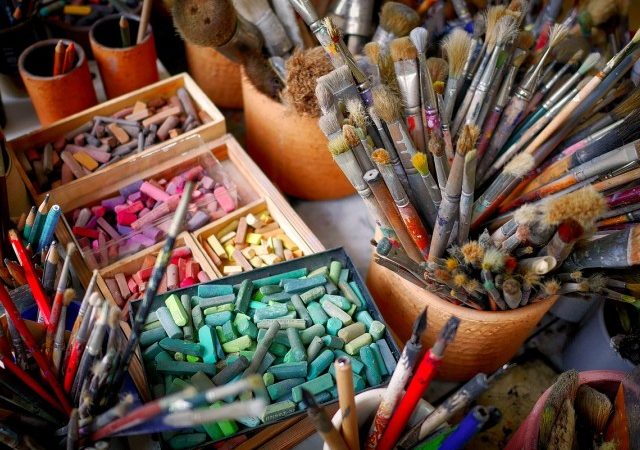 Skrundas mākslas studijas dalībnieku darbu izstāde "Mirkļu virtenes"