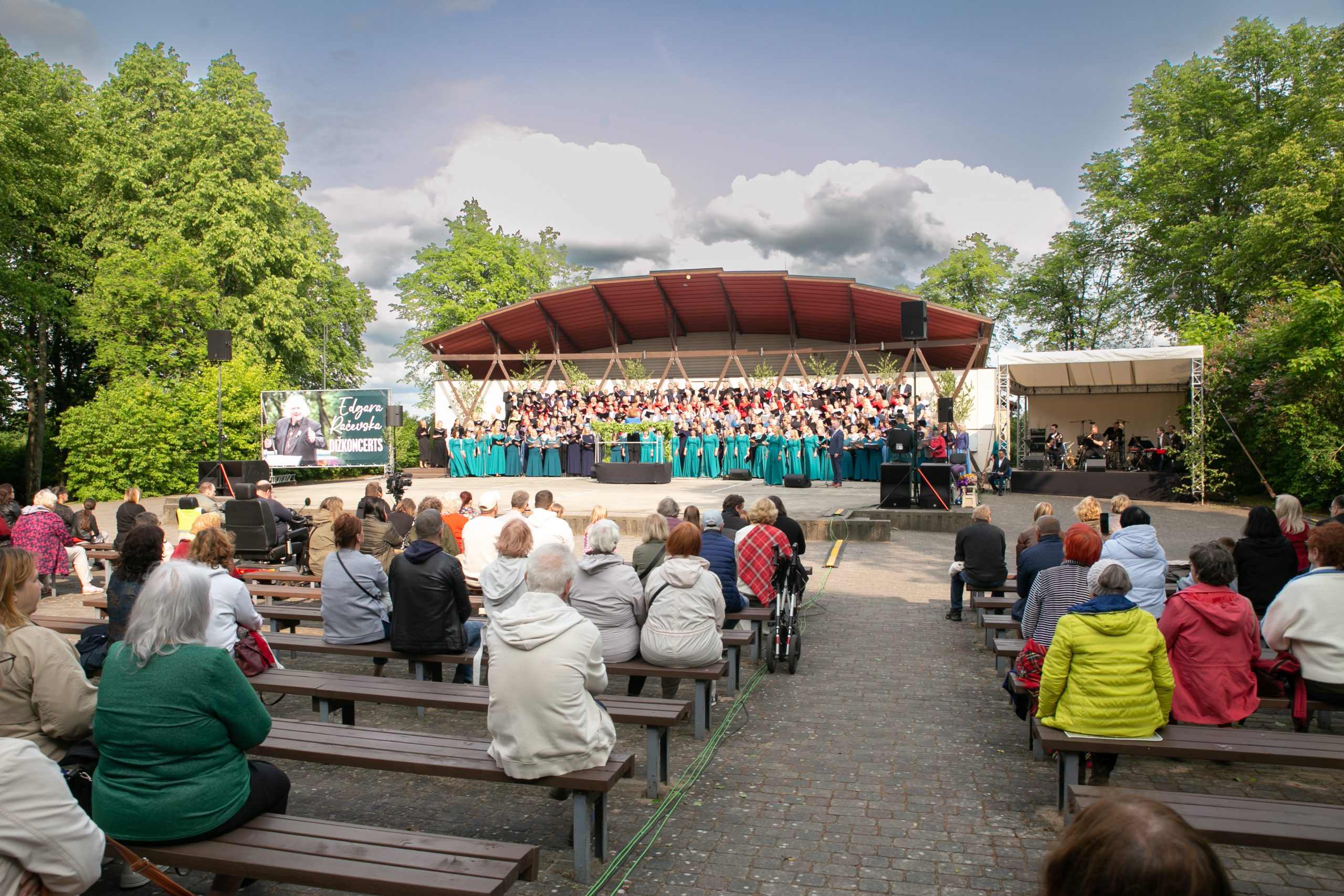 8. jūnijā, Skrundas pilskalna estrādē izskanēja koru dižkoncerts “Zeme. Upe. Dziesma”, kas tika veltīts izcilajam diriģentam un komponistam Edgaram Račevskim, kurš dzimis Skrundā. Uz vienas skatuves kopīgās dziesmās vienojās ap 300 dziedātāju.