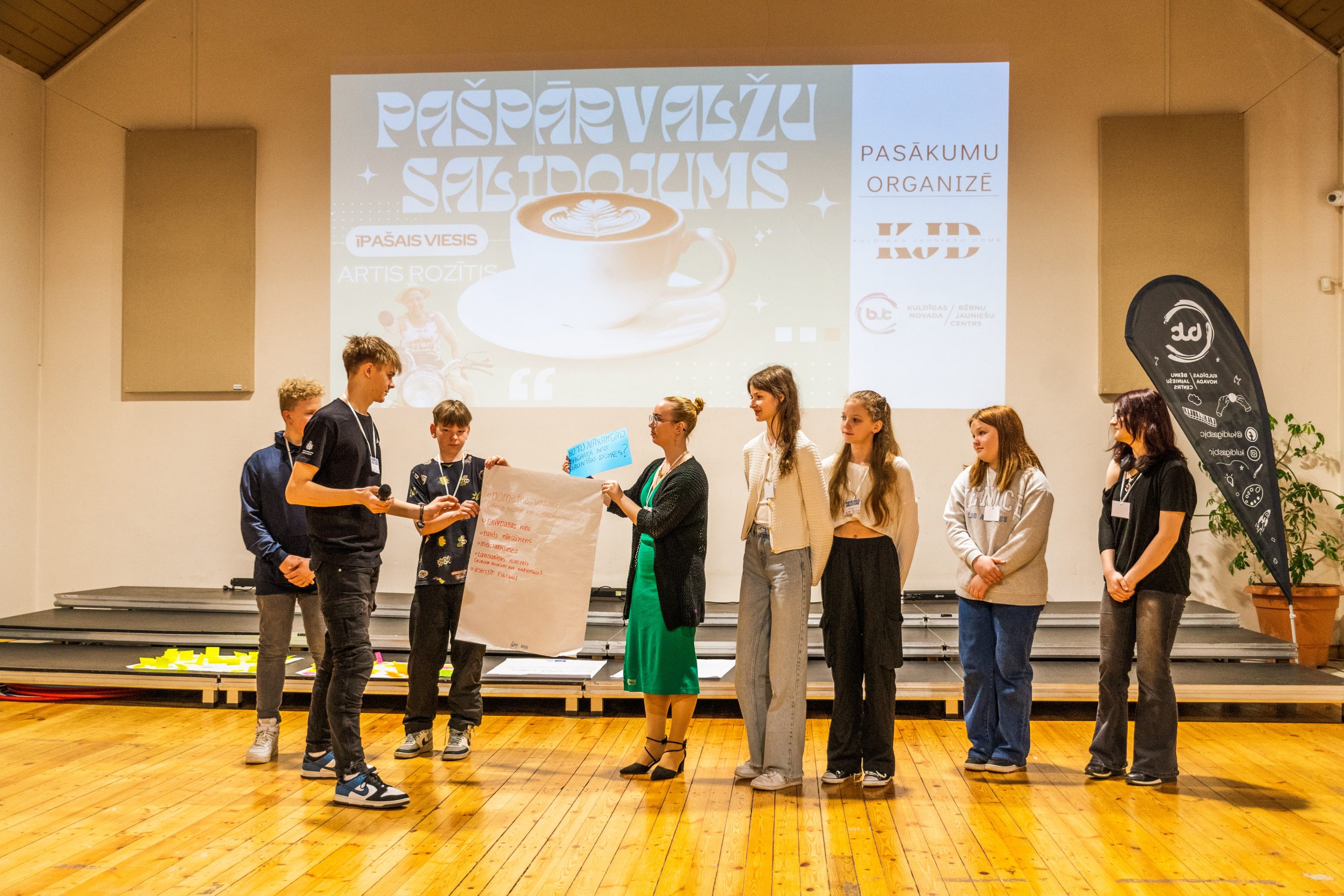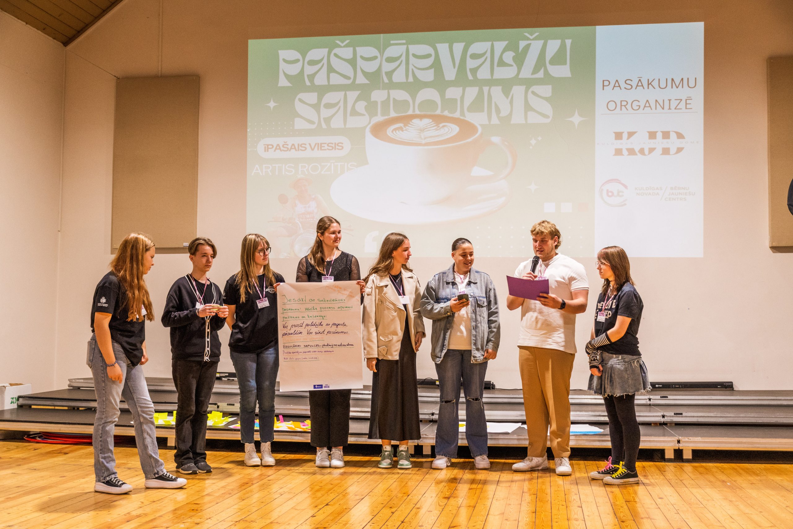 Kuldīgas novada skolu pašpārvalžu salidojums norisinājās projekta “KJD” (nr. 2023-1-LV02-KA154-YOU-000146946) ietvaros, ko līdzfinansē Eiropas Savienība.